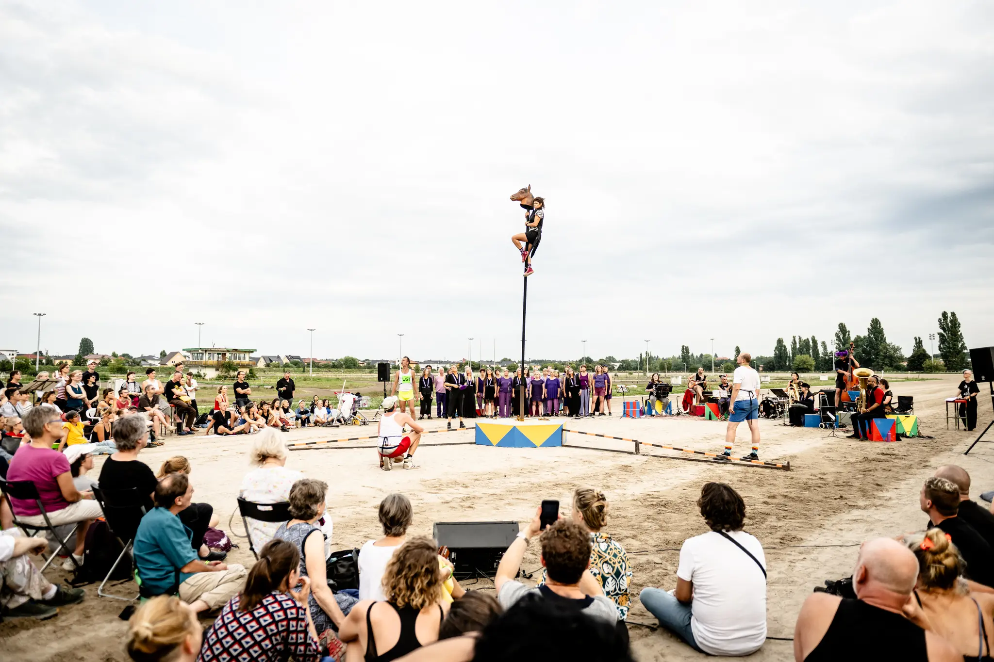 Der Veranstaltungsort, die alte Trabrennbahn in Berlin-Karlshorst, inspirierte uns zum neuen Maskottchen des Festivals: dem Pferdebär. Ein Zwitterwesen aus Berliner Bär und Ferrari-Hengst, elegant und trottelig zugleich, gemütlich, aber kompetitiv.
