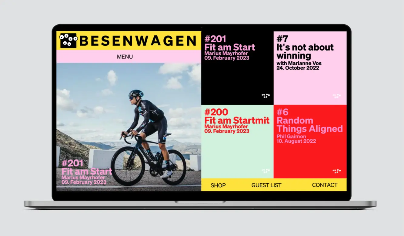 5 Jahre Besenwagen: Zeit für einen neuen Look. Einfach, emotional und ganz nah dran. Wir entwickelten ein lebendiges, modulares System, dass sich jeden Wetter und Straßenbedingungen anpasst. Der visuelle Baukasten setzt sich aus einer starken Typo, kräftigen Farben und einem flexiblen Rastersystem zusammen.