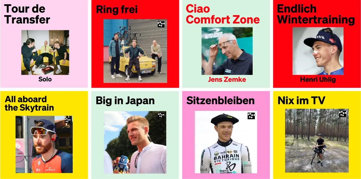 Das Key Visual besteht aus drei Augenpaaren, die uns aus dem Inneren des Besenwagens zublinzeln. Drei Augenpaare die ganz nah dran sind am Radsport und den Zuhörer:innen.
