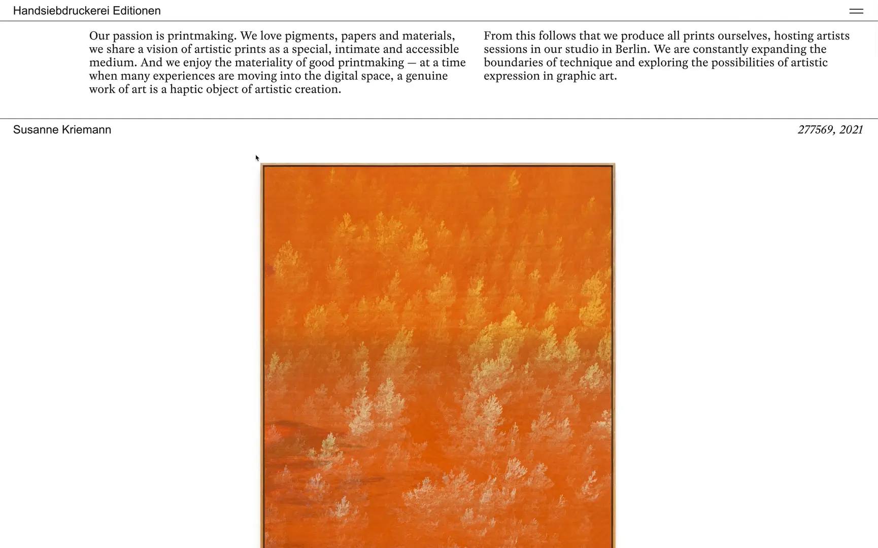 Die Website zeigt die entstandenen Arbeiten und bietet die Möglichkeit diese direkt anzufragen. Der Zoom ermöglicht es den Betrachter:innen den Werken auch digital ganz nah zu kommen und diese visuell abzutasten.