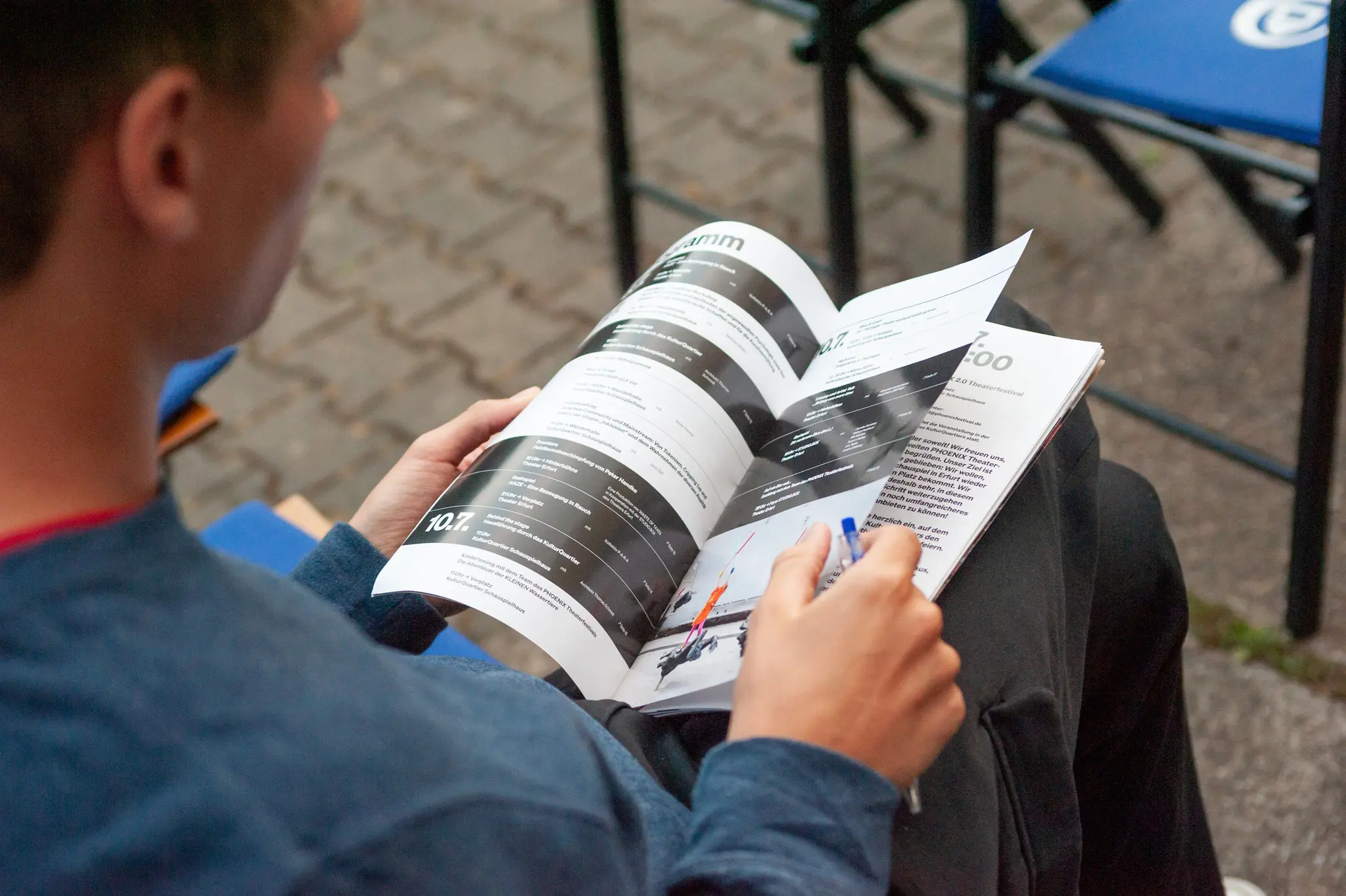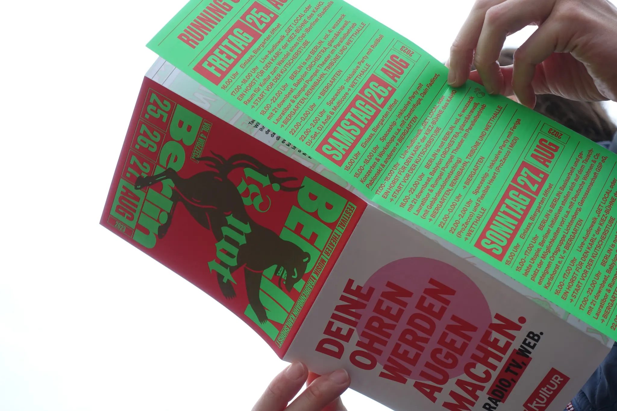 Das Erscheinungsbild zieht sich durch Programmheft, Plakat, Social Media und Website. Dort findet man das Veranstaltungsprogramm in übersichtlicher Listenansicht und alle wichtigen Informationen zum Festival in einer bildschirmfüllenden, responsiven Gestaltung.