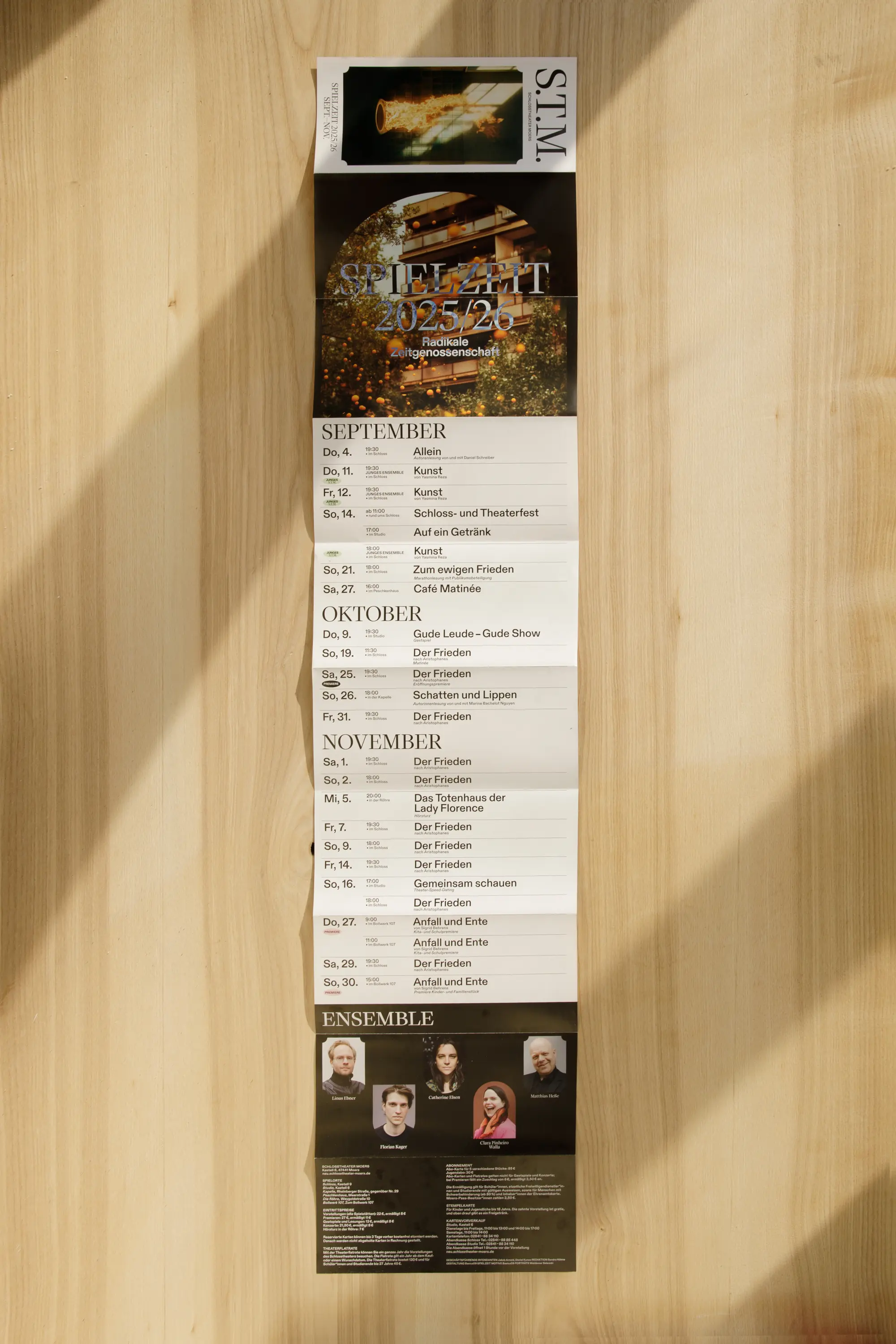 Mit dem Intendanten-Duo Jakob Arnold und Daniel Kunze beginnt eine neue Theaterära am Schlosstheater Moers! Unter dem Leitmotiv „radikale Zeitgenossenschaft“ greifen die Produktionen der Spielzeit 2025/26 Themen auf, die unsere Gegenwart prägen.